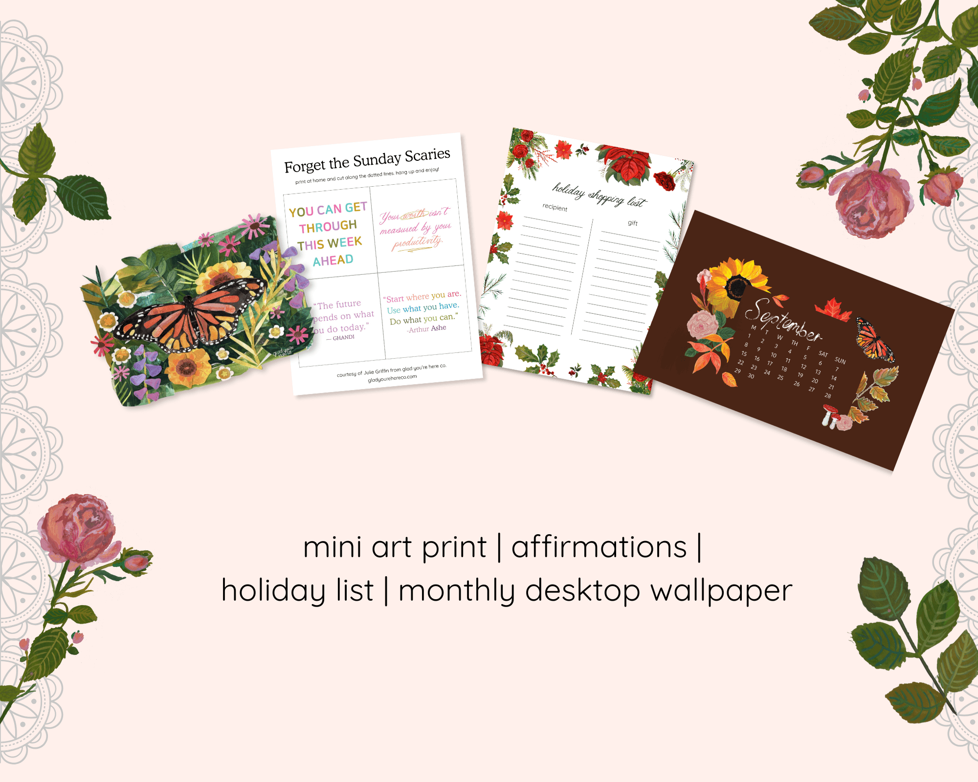 I subscribed to the monthly postcard subscription because I love the positive message and the beautiful designs! I find the messages so uplifting.