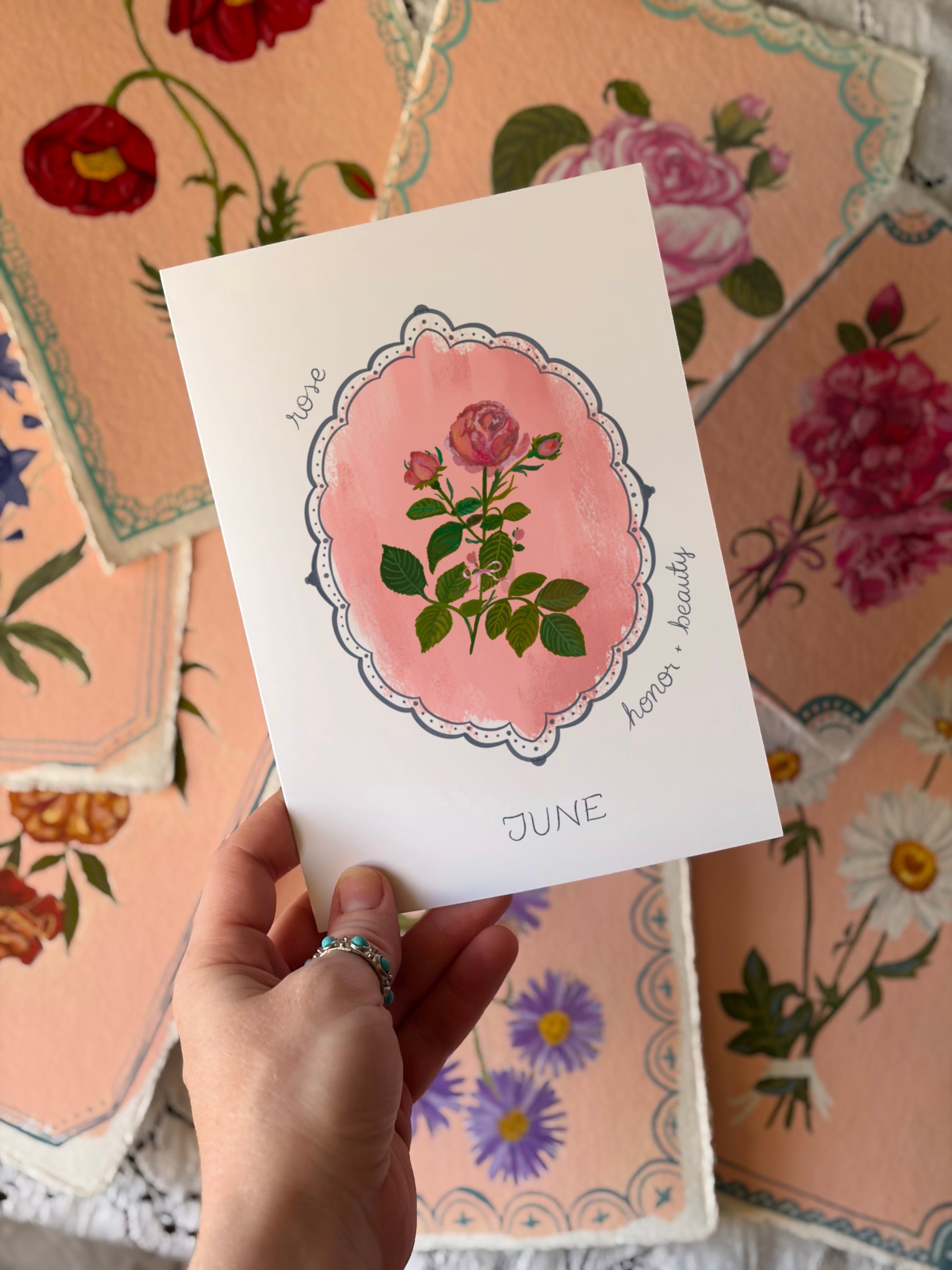 June Birth Flower Greeting Card – Vintage Botanical Floral Birthday Card – Hand-Painted Wall Art of Beauty & Passion