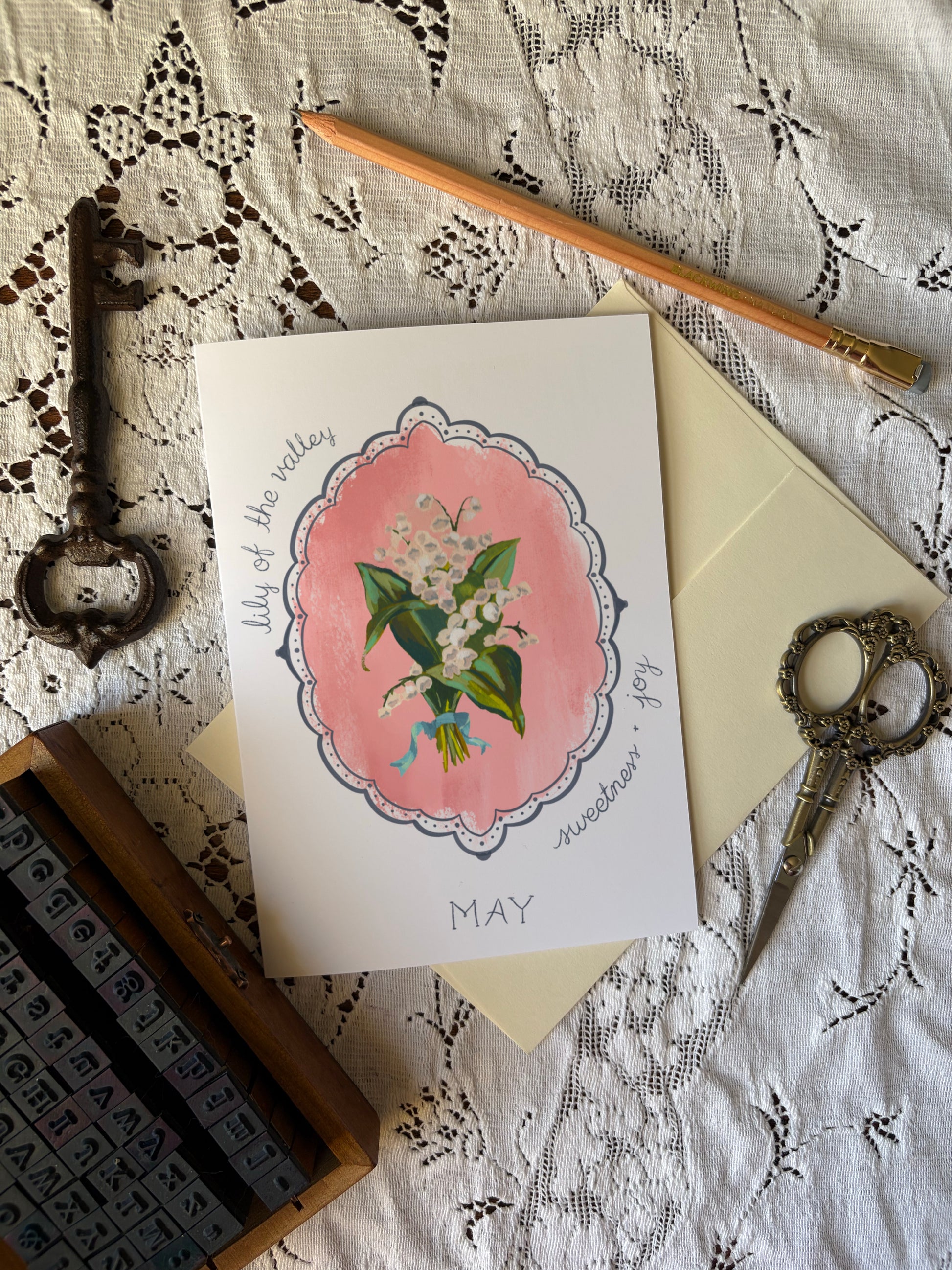 May Birth Flower Greeting Card – Lily of the Valley Birthday Card – Vintage Botanical Cheer & Optimism