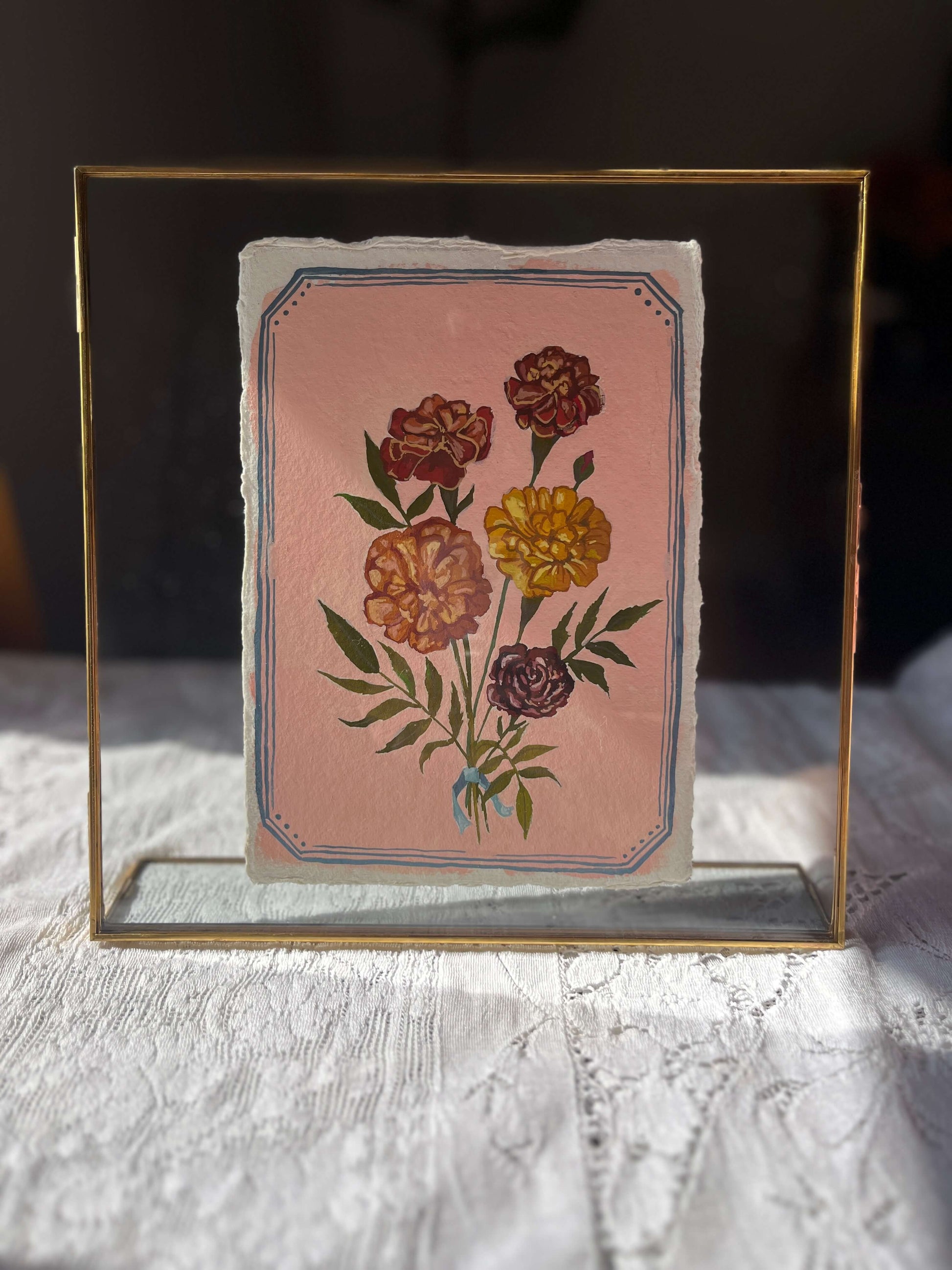 Original October Birth Month Flower Art Marigold Flower Painting – Marigold Flower Painting on Handmade Paper – Vintage Botanical Artwork