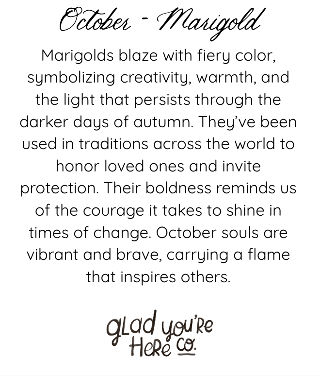Bring the golden glow of autumn to life with this original Marigold flower painting, the official birth month flower for October. Representing warmth, creativity, and passion, the marigold is a powerful symbol of life and light—perfect for celebrating October birthdays or adding bold floral energy to your space.